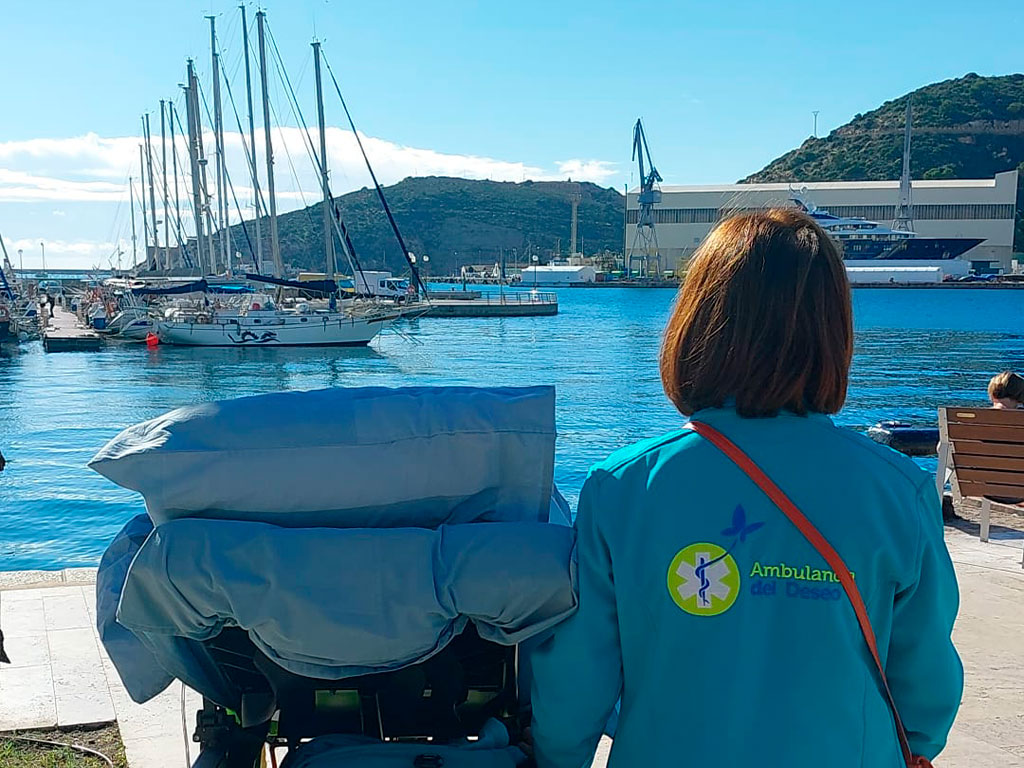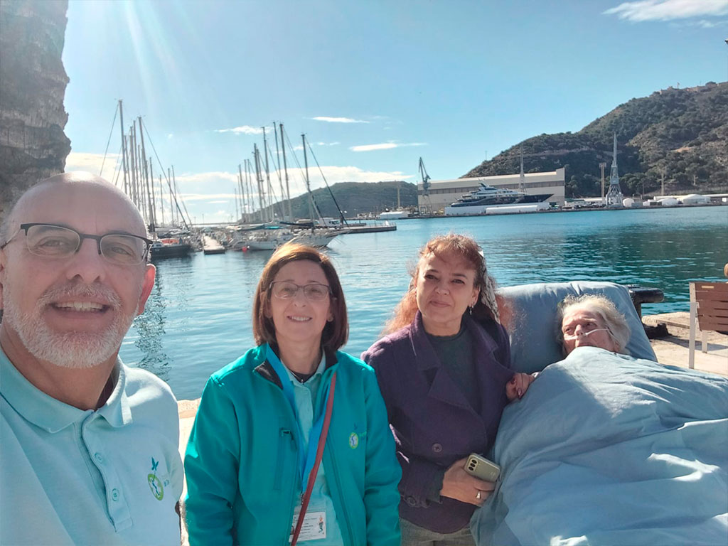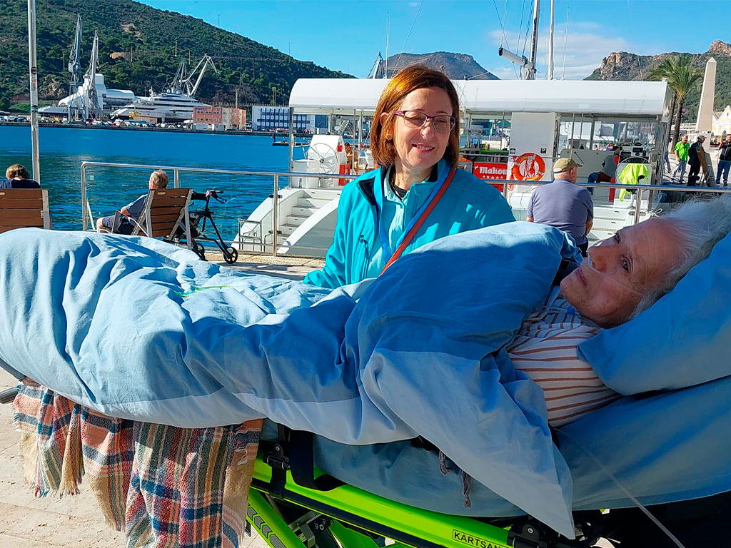Hemos tenido el honor de cumplir el deseo de Ana, residente en un centro donde su movilidad es muy limitada. La recogimos acompañada de su sobrina para llevarla a un lugar que guardaba en su memoria y en su corazón: el puerto de Cartagena.