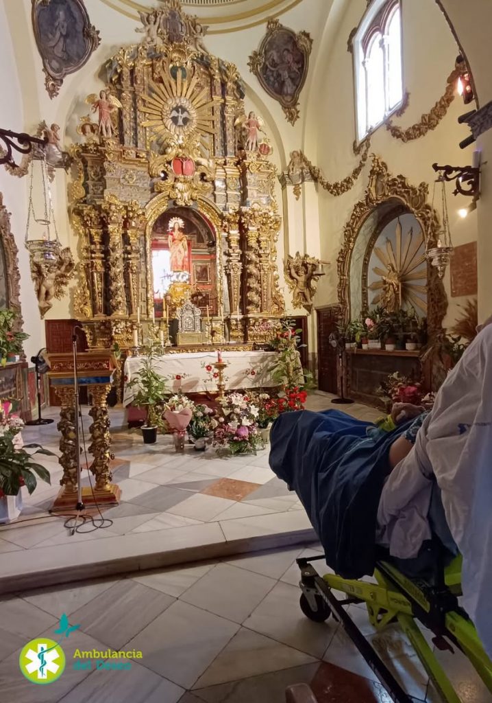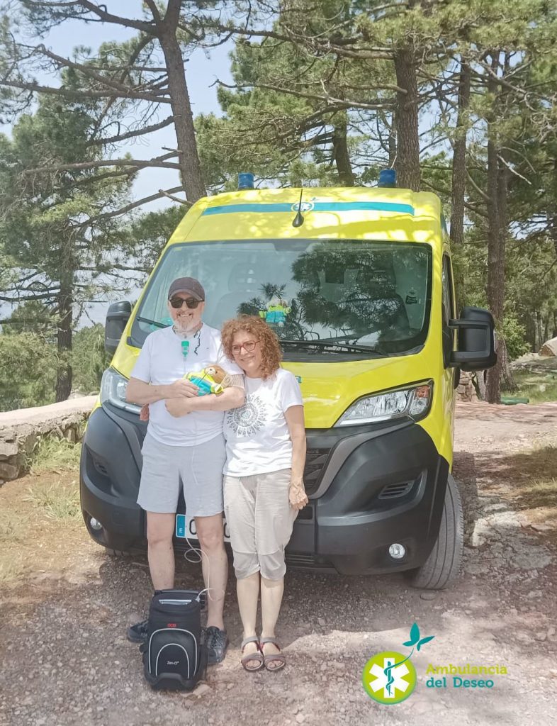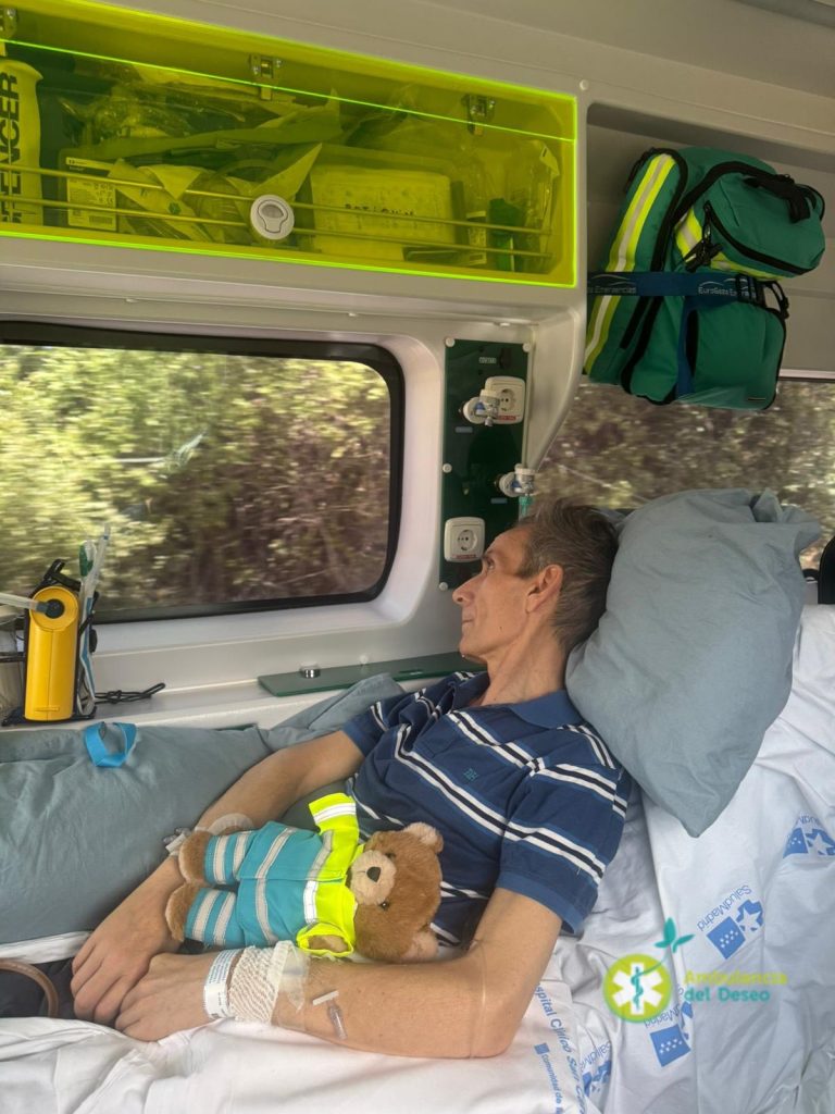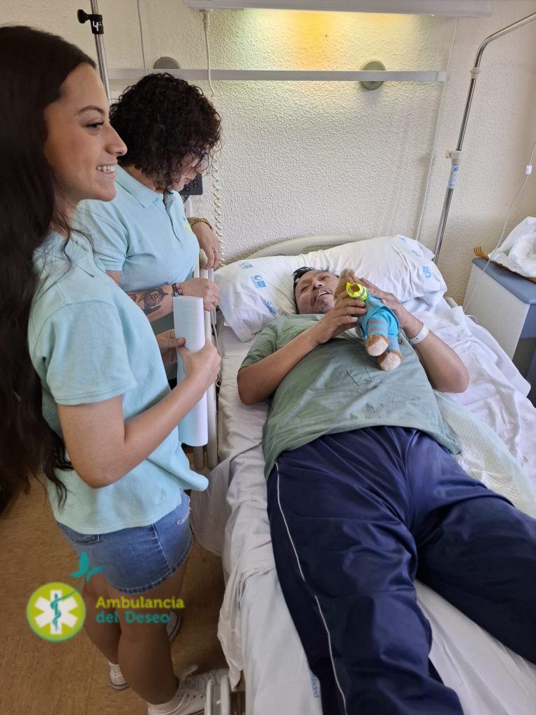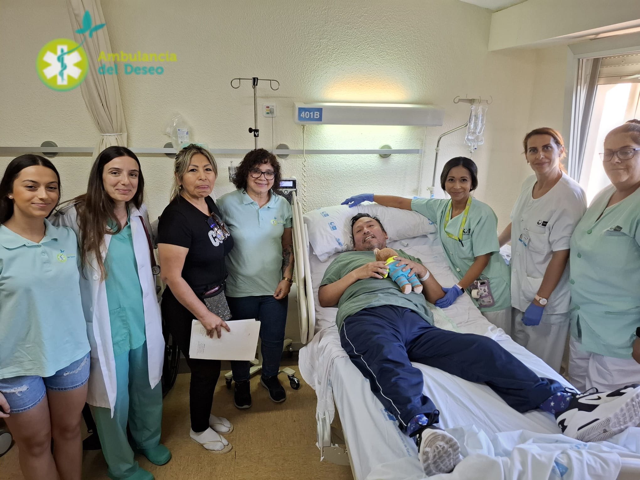 Durante el viaje en ambulancia, iba arropado por su hijo y nuestro enfermero. Fue un trayecto duro, pero su sonrisa no se borraba; su mirada irradiaba luz y felicidad.