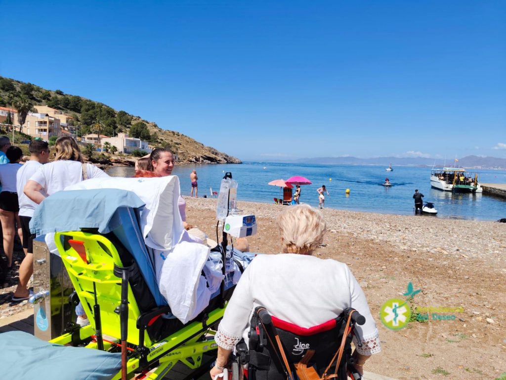 Juani, hospitalizada desde hace meses, deseaba volver a la playa de la chapineta en La Azohia, donde tantos días ha disfrutado con su familia. Pudo tomar el sol, sentir la brisa del mar y disfrutar de un buen almuerzo de nevera y táper que su familia con tanto cariño preparó. Por supuesto con Coca-Cola en botella de cristal que es la que a ella le gusta.