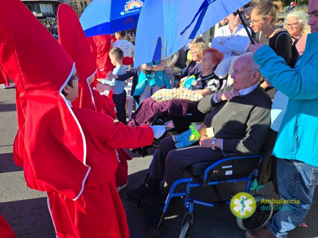Miguel ha vuelto a su barrio para ver a su Cofradía en la procesión rodeado de su familia.