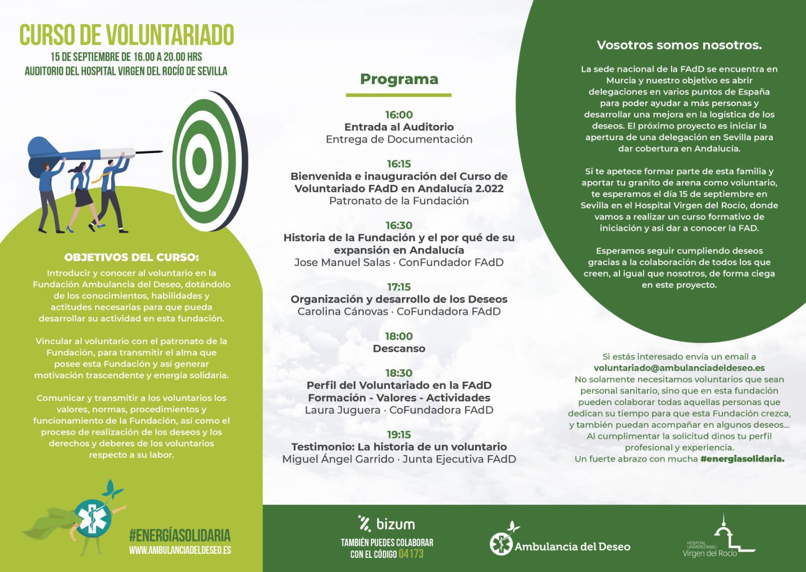 ¡Atención! Tenemos una gran noticia que contaros. El próximo jueves 15 de Septiembre en el Auditorio del Hospital Universitario Virgen del Rocío de Sevilla, tendrá lugar nuestro primer curso de voluntariado de la Fundación Ambulancia del Deseo en Andalucía.