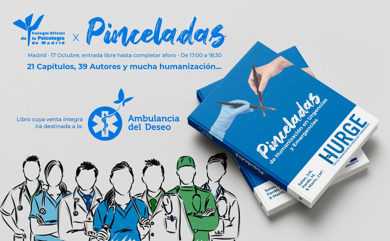 El próximo lunes 17 de Octubre estaremos en el Colegio Oficial de la Psicología de Madrid, de 17.00 a 18.30 hrs presentando el libro ‘Pinceladas de Humanización en Urgencias y Emergencias’