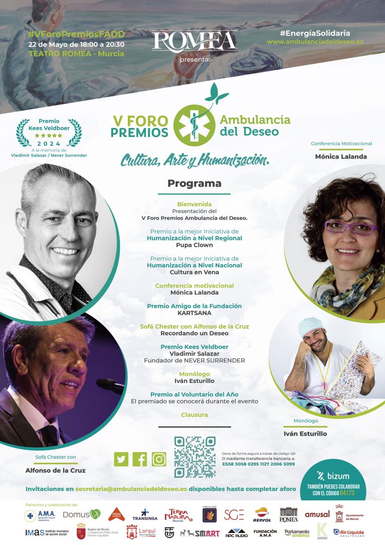 Ya falta 1 mes para nuestro V Foro Premios Ambulancia del Deseo en el Teatro Romea y es el momento de desvelaros nuestro cartel/Programa para este año con premiados y conferenciantes.
