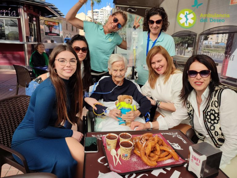 Ingresada en el hospital de Cartagena, nos pidió su deseo: ¡tomar un chocolate con churros!, algo tan sencillo y tan imposible debido a su estado, pero ese domingo el equipo de voluntarios hizo posible una maravillosa mañana donde además pudo disfrutar como una niña pequeña del Pasacalles de los ‘judíos’ marrajos de la agrupación de Soldados Romanos de la cofradía de Nuestro Padre Jesús Nazareno de Cartagena.