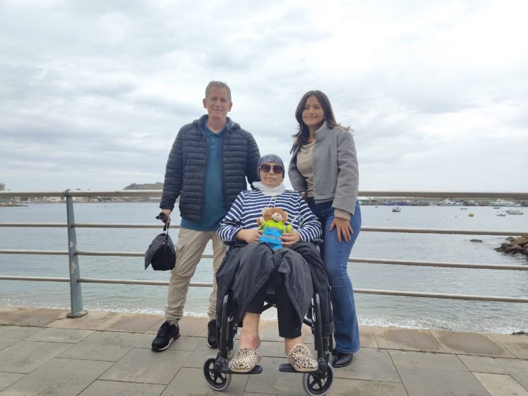 No todos los deseos se cumplen en grandes escenarios. Algunos simplemente se necesita lo esencial: familia, mar y tiempo compartido. Teresa ha podido cumplir uno muy especial: viajar a Águilas para disfrutar de una comida en familia con el Mediterráneo como testigo. El día comenzó con tímidas gotas de lluvia, como si el cielo dudara… pero poco a poco el sol se fue abriendo paso, regalando una jornada luminosa y serena. Paseamos junto a la orilla, sintiendo la brisa, la calma del mar y esa paz que solo ciertos momentos saben ofrecer.